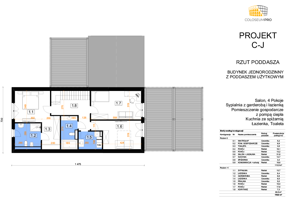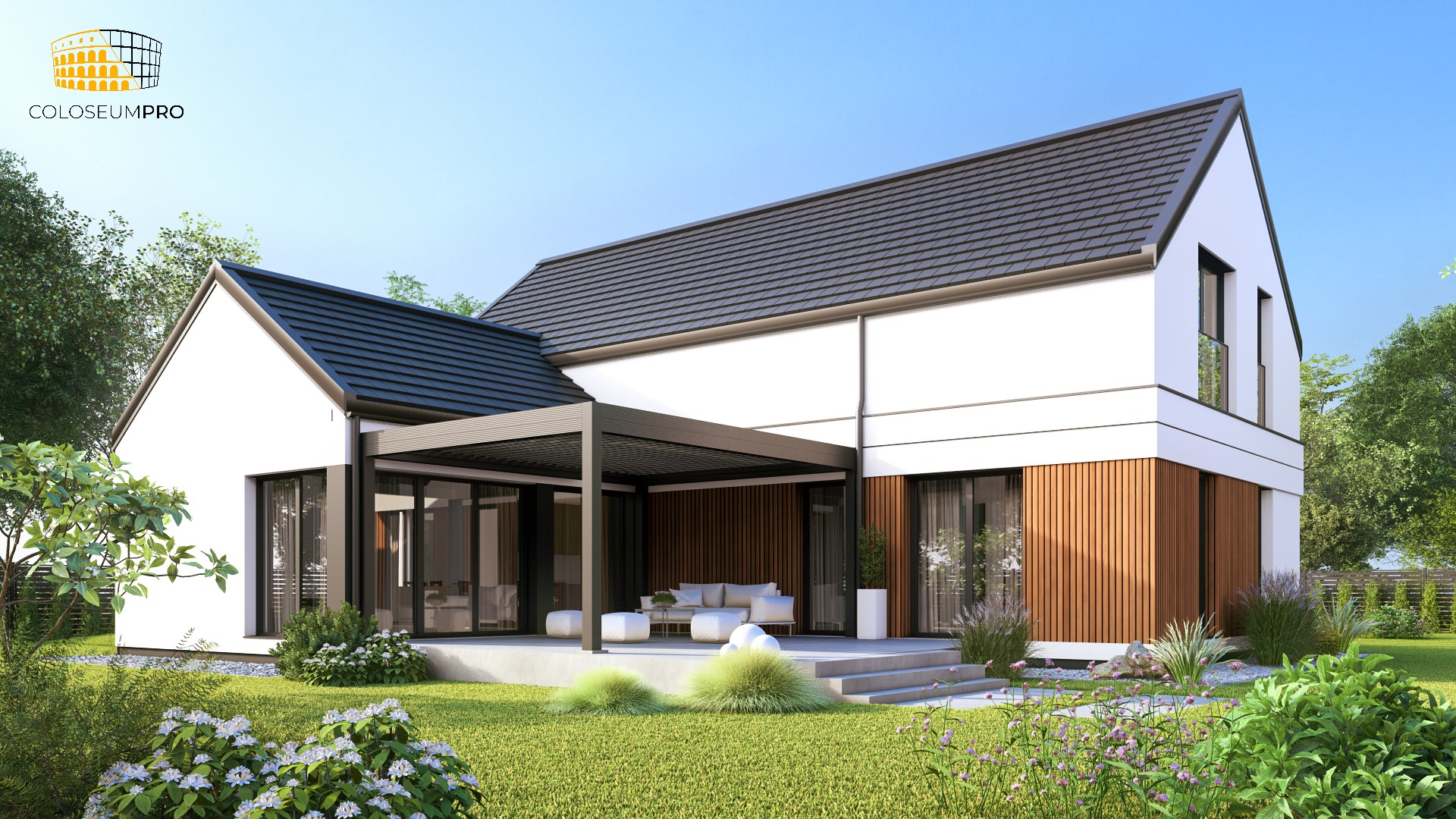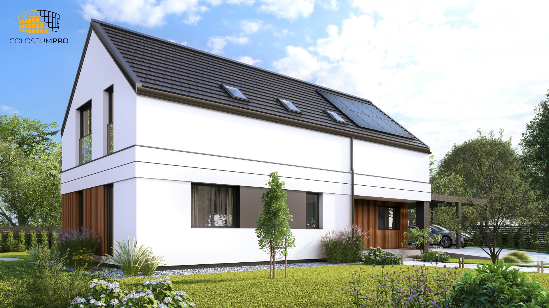 Projekt C-J to kompaktowy i nowoczesny dom z użytkowym poddaszem, zaprojektowany z myślą o funkcjonalności i wygodzie codziennego życia. Przemyślany układ pomieszczeń pozwala na wyraźne oddzielenie strefy dziennej od prywatnej, co sprzyja komfortowi domowników. Projekt idealnie sprawdzi się zarówno dla rodzin 2+2, jak i większych, zapewniając każdemu z domowników wygodę i prywatność. Prosta, elegancka forma budynku w połączeniu z energooszczędnymi rozwiązaniami sprawia, że jest to propozycja nie tylko estetyczna, ale i praktyczna. Projekt C-J doskonale wpasowuje się w różnorodne typy działek, stanowiąc idealny wybór dla osób poszukujących nowoczesnego, wygodnego i ekonomicznego domu.